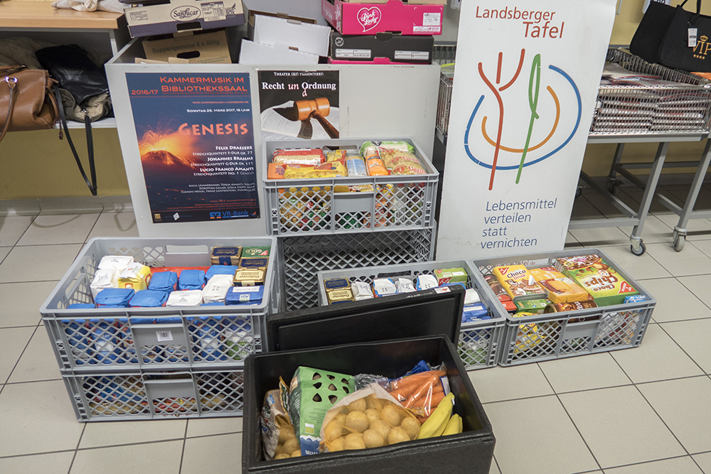 Vorm Feneberg haben wir die Landsberger gebeten, ein haltbares Lebensmittel oder einen Hygieneartikel mehr zu kaufen und der Landsberger Tafel zu spenden – mit durchschlagendem Erfolg: Um 13:00 Uhr konnten wir den Mitarbeitern der Tafel 23,5 gefüllte Kisten übergeben.